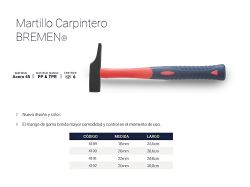 Martillo Carpintero Bremen 22mm Mango Fibra