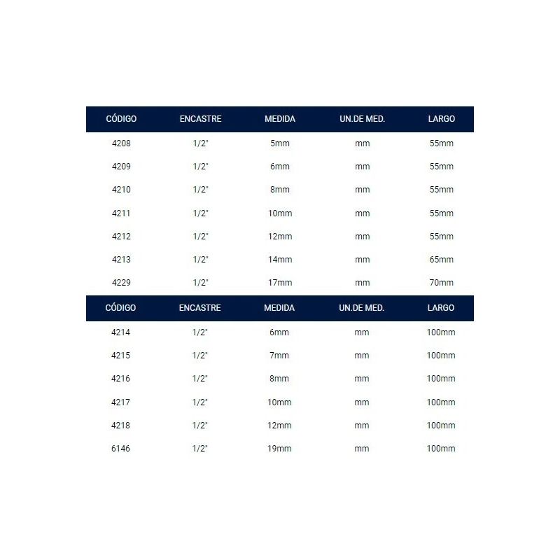 Boc.punta Hexagonal Enc.½" 5x 55 Mm