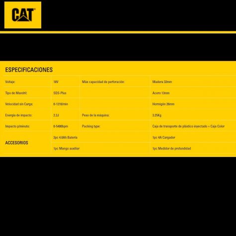 Cat Rotomartillo A Bateria 18v C/cargador Y 2 Baterias