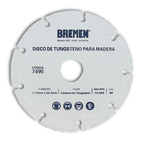 Disco De Tungsteno Para Madera 115mm X 22,2mm Bremen®