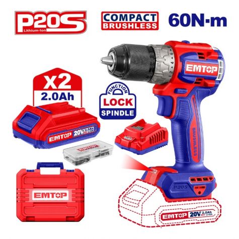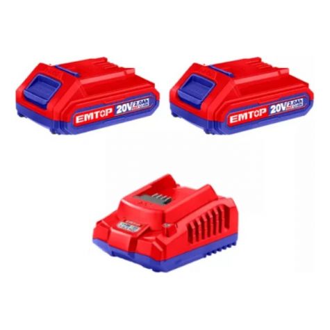 Emtop Combo Taladro 20v C/ 2 Baterias Y Cargador + Linterna A Bateria 270 Lumens