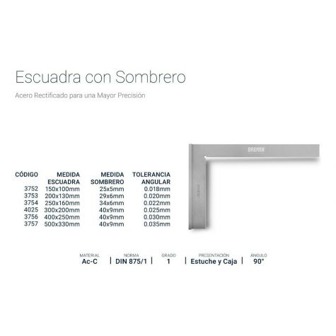 Escuadra Con Sombrero Bremen® 150x100mm Din 875/1