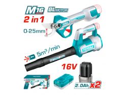 Total Kit Tijera De Poda + Soplador Industrial Con Cargador Y 2 Baterias 16v Tosli250383-4