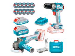 Total Kit Taladro Percutor + Amoladora Angular Industrial Total Tckli20273-4