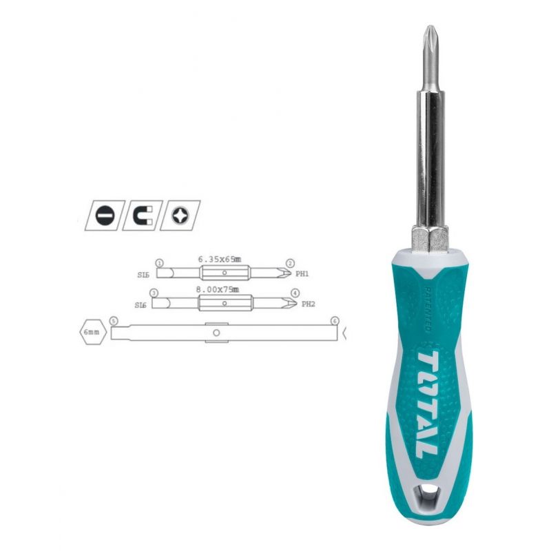 Total Destornillador De Puntas Intercambiables 6 En 1 Industrial Total Tht2506076