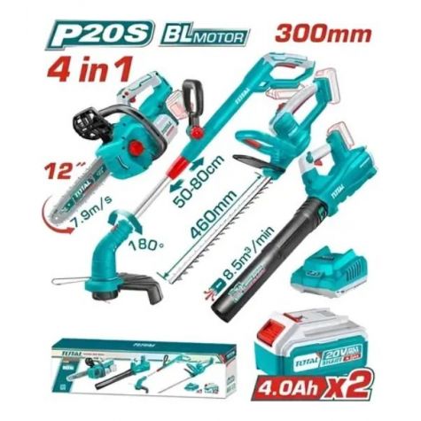 Total Kit Motosierra + Bordeadora + Cortacerco + Soplador Con Cargador Y 2 Baterias 4.0ah Tosli250496-4