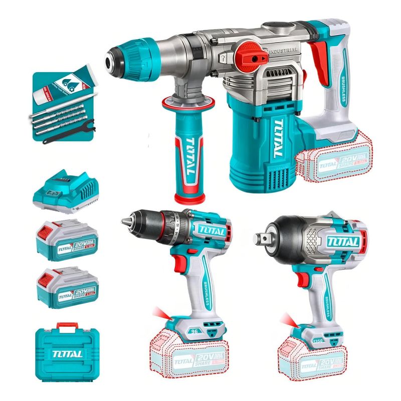 Total Kit Taladro Percutor + Llave De Impacto + Rotomartillo Industrial Total Tosli250281-4